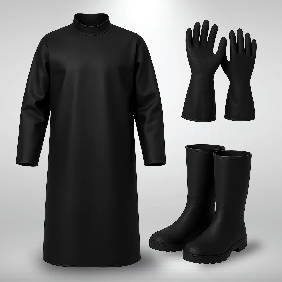 El protector corporal viene acompañado de botas cubrecalzado, también confeccionadas en neoprene, y de guantes largos para colocar por sobre el protector corporal. Con la utilización de estos tres elementos (protector corporal, botas y guantes) se logra prácticamente una cobertura corporal del 100% del cuello hacia abajo.